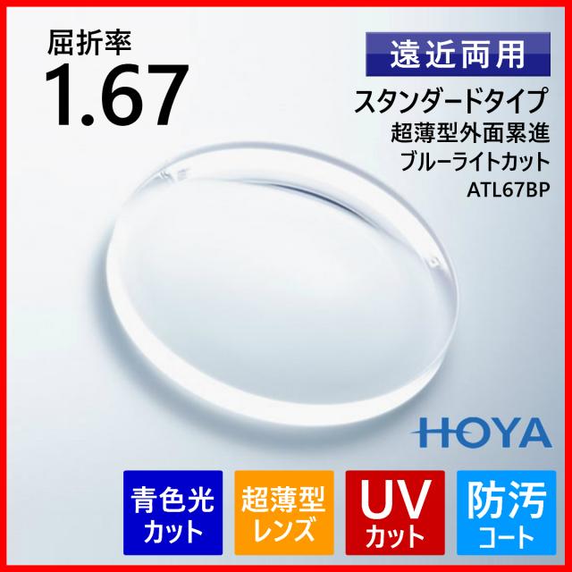 眼鏡 メガネ 遠近両用 度付き レンズ ブルーライトカット 紫外線カット UVカット 超薄型 1.67 HOYA ATL67BP メガネレンズ