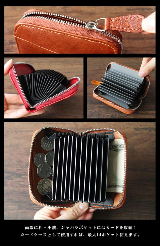 カードケース コインケース メンズ レディース ユニセックス 本革 バロンレザー 蛇腹 ジャバラ式 ラウンドファスナー ブラック ブラウン ダークブラウン レッド 【ギフト】 cd040