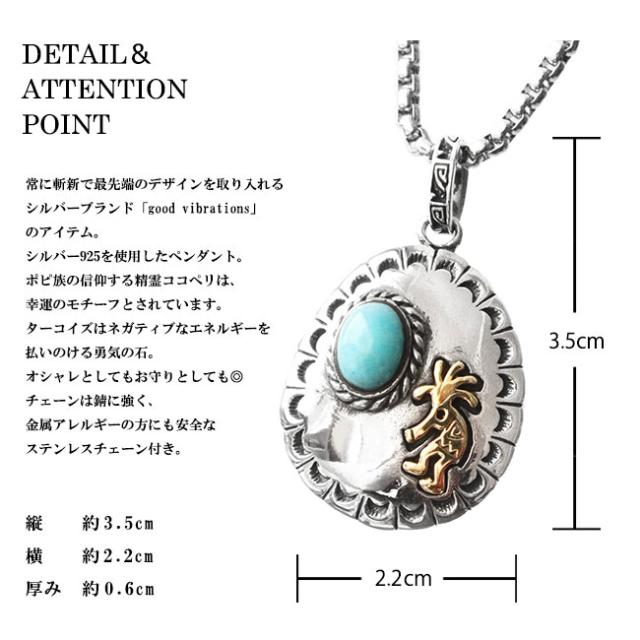 good vibrations グッドバイブレーション シルバーペンダント メンズ レディース シルバー925 ブラス 真鍮 ターコイズ ココペリ ネイティブ 石板 チェーン付き シルバー 【ギフト】 pe326