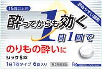 シックS錠は,バスや電車,船などの揺れによる刺激で生じる耳の奥にある三半規管の興奮を鎮め,嘔吐中枢の興奮を抑え,吐き気,めまいなどの乗物酔いによる症状を緩和する乗物酔い薬です。