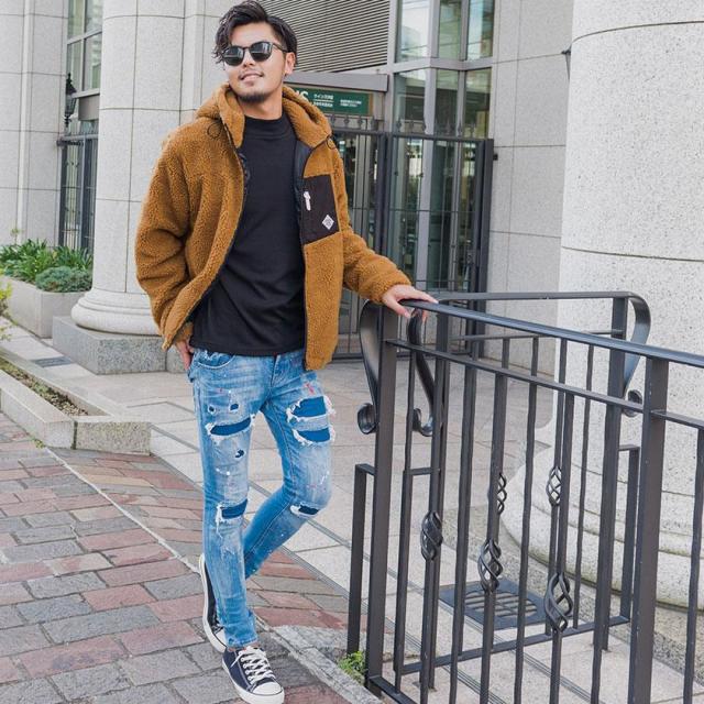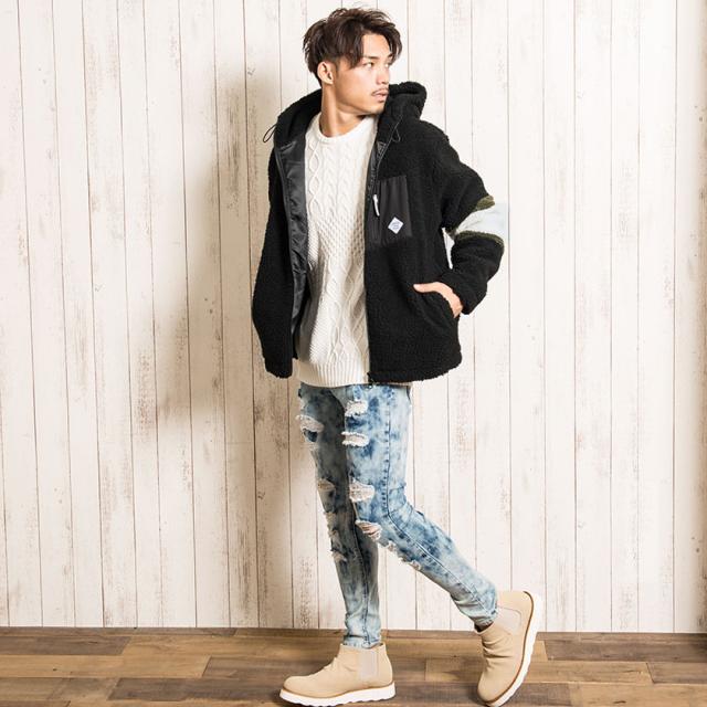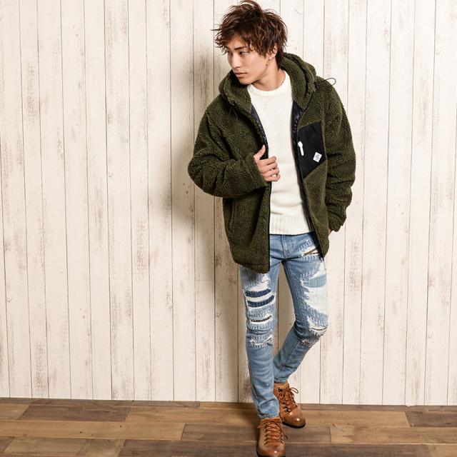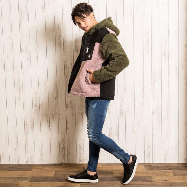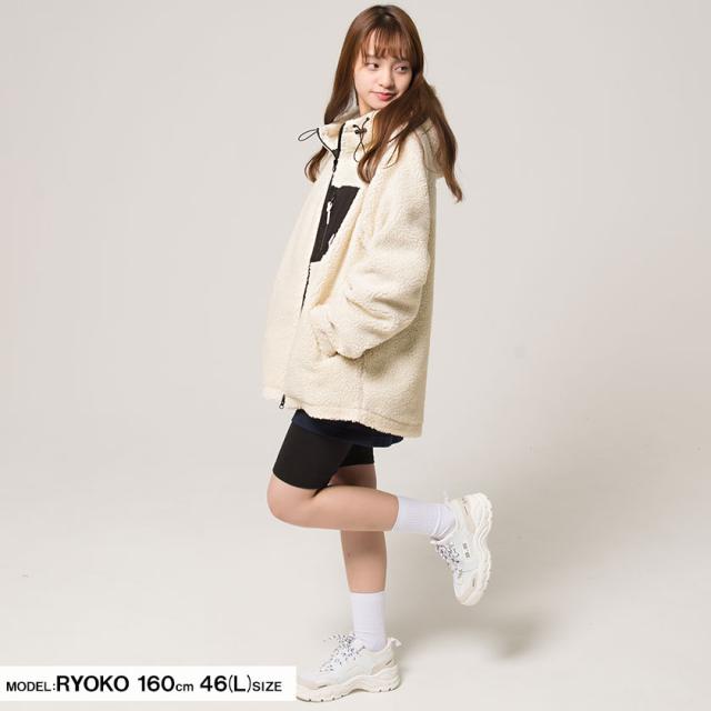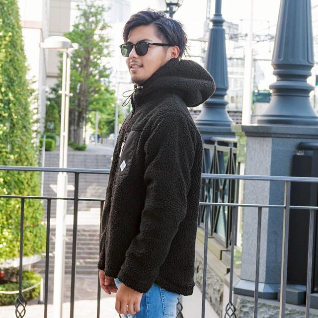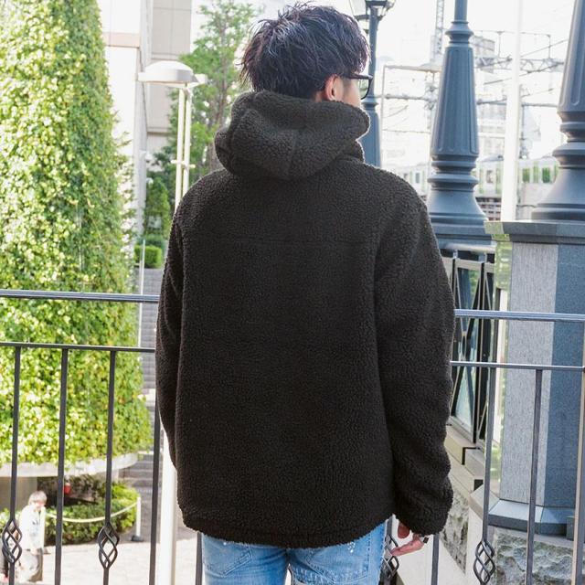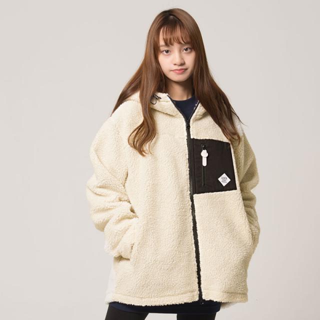 モコモコとした手触りの暖かなボア素材で温もりを与えてくれるパーカー。