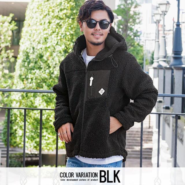 ボア パーカー メンズ アウター 大きいサイズ ブランド ビッグシルエット ブルゾン カジュアル アウトドア 大人 ブラック 黒 もこもこ シンプル 防寒 暖かい 黒 白 M L 秋 冬 CavariA 秋 冬 20代 30代 40代 メンズファッション 即日発送 [CABD19-02]