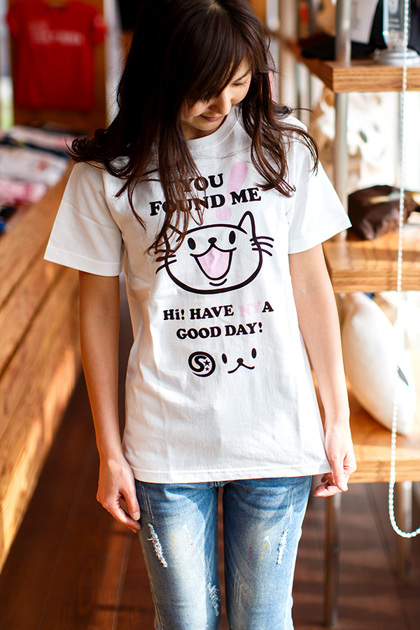 | ■ FOUND ME(ホワイト) 「見つかっちゃった!」 上着を着てると、その上着を脱いだとたんに、この隠れ猫が顔を出す!そんな仕掛けのTシャツです。 特にパーカー「LOOK ME UP!」と一緒に着ると、ニャーニャー鳴き声のするパーカーのジッパーを下すと、このTシャツの顔が出てくる、とってもとっても楽しい仕掛けが完成します! ※生地に染み込むインクを使い、少しかすれたようにプリントしてユーズド感を演出しています。 ※このTシャツは、オープンエンド糸を使用したアメリカンテイスト溢れるざっくりした着心地のTシャツです。 | |||
