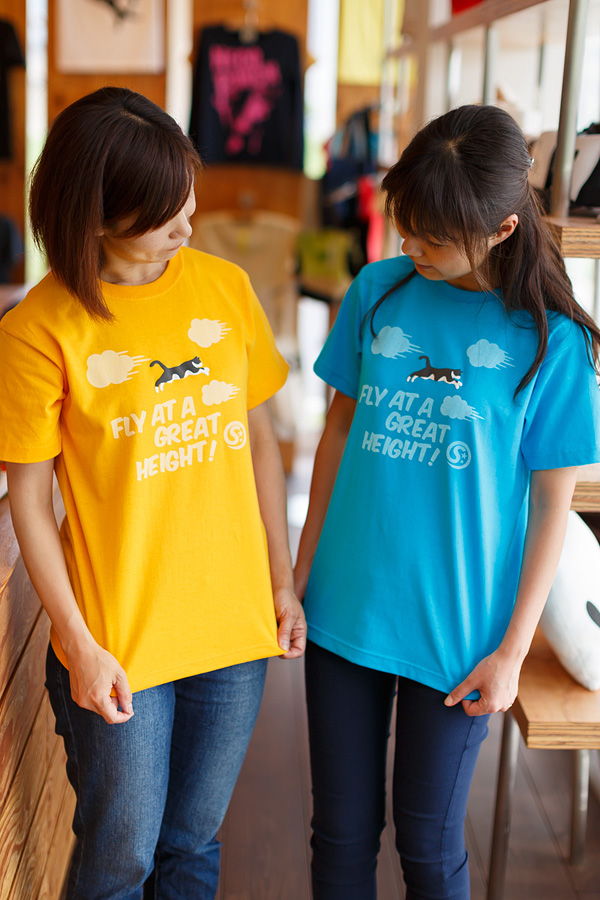 青空を飛び回る青いTシャツの青空バージョンと、夕焼けのオレンジの空をイメージした、夕日バージョンの2種類をご用意しました。