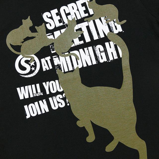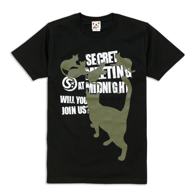 Tシャツ メンズ レディース 半袖 猫 SECRET MEETING - ブラック ネコ ねこ 猫柄 雑貨 - メール便 - SCOPY スコーピー