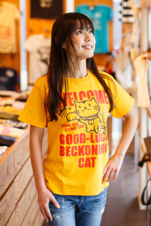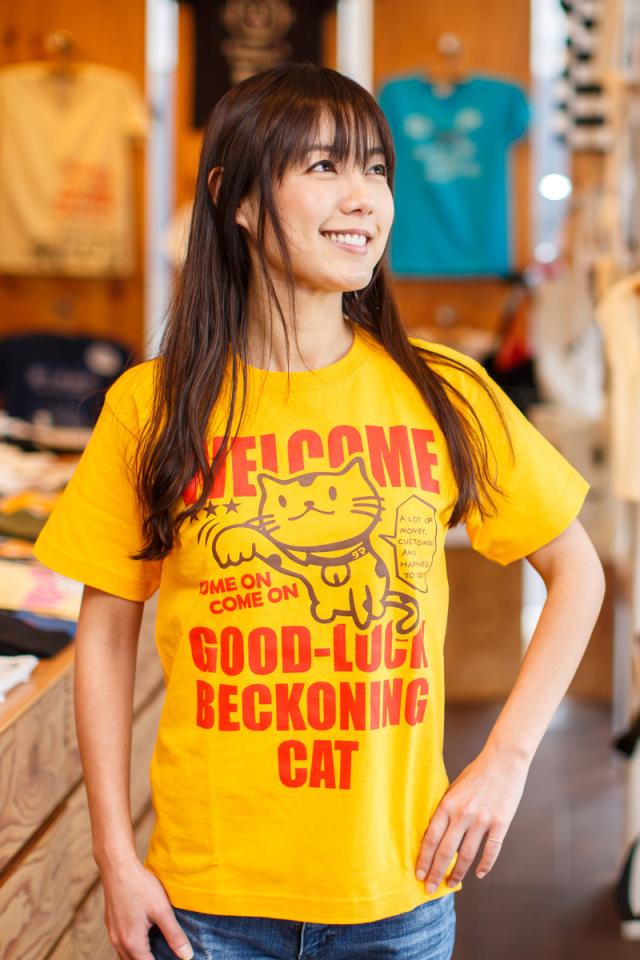 Tシャツ メンズ レディース 半袖 猫 BECKONING CAT - ゴールドイエロー ネコ ねこ 猫柄 雑貨 - メール便 - SCOPY スコーピー