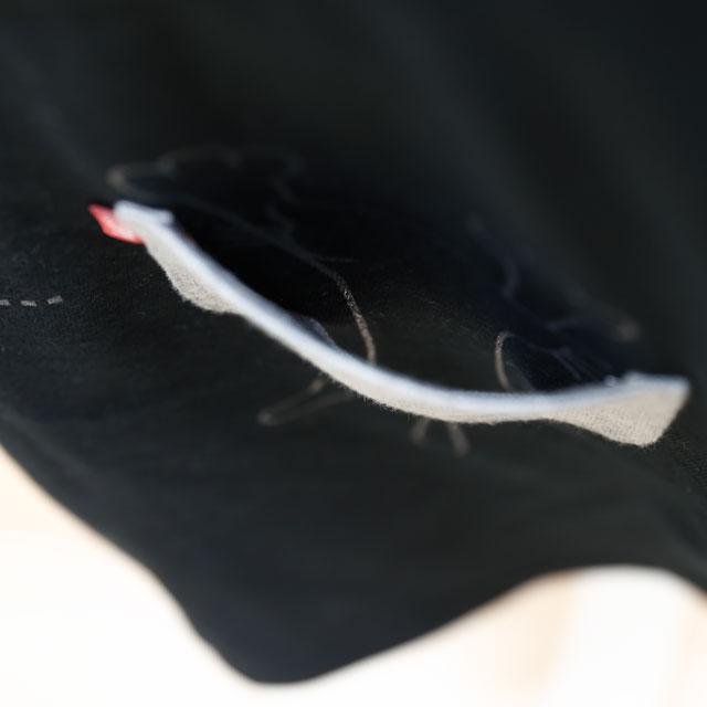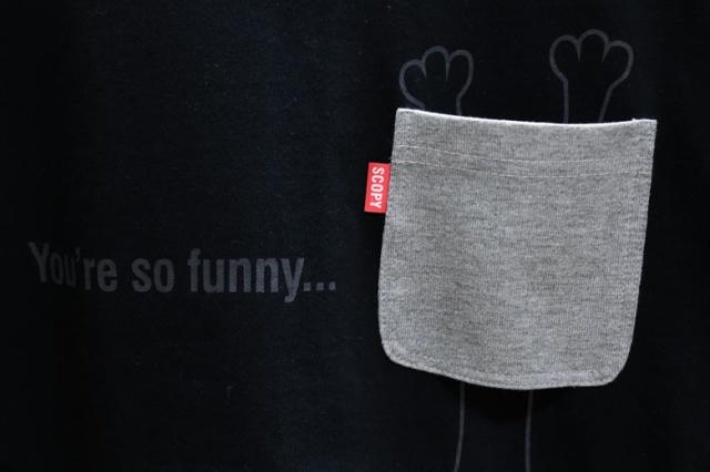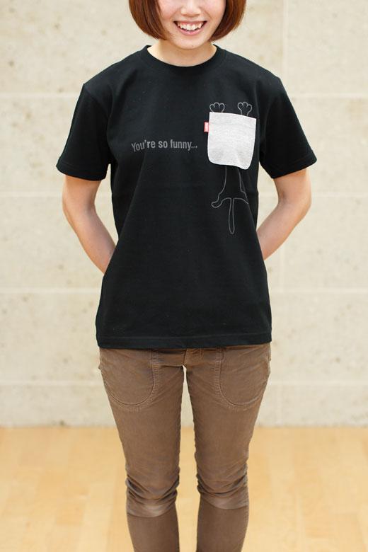 ポケットにネコを入れて連れ出そう的なTシャツです。ポケットはフェイクではなく実際に縫製で付けたポケットで、実用性もバッチシ?です。