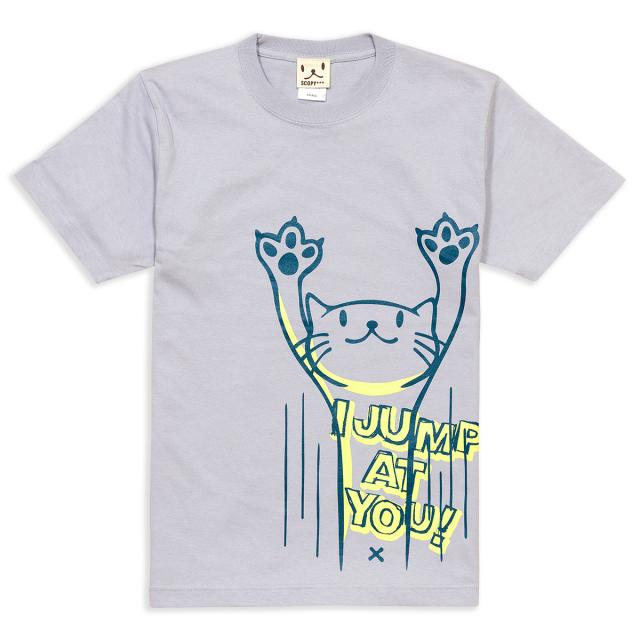 Tシャツ メンズ レディース 半袖 猫 JUMP - シルバーグレー ネコ ねこ 猫柄 雑貨 - メール便 - SCOPY スコーピー