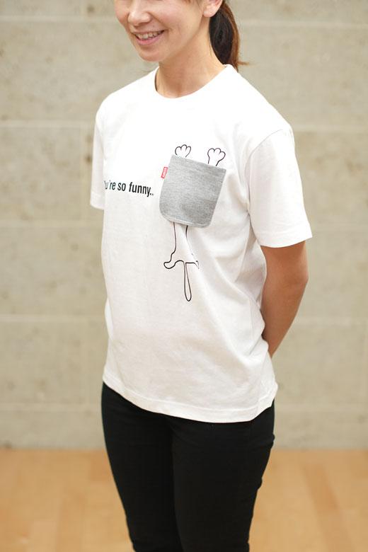 ポケットにネコを入れて連れ出そう的なTシャツです。ポケットはフェイクではなく実際に縫製で付けたポケットで、実用性もバッチシ?です。