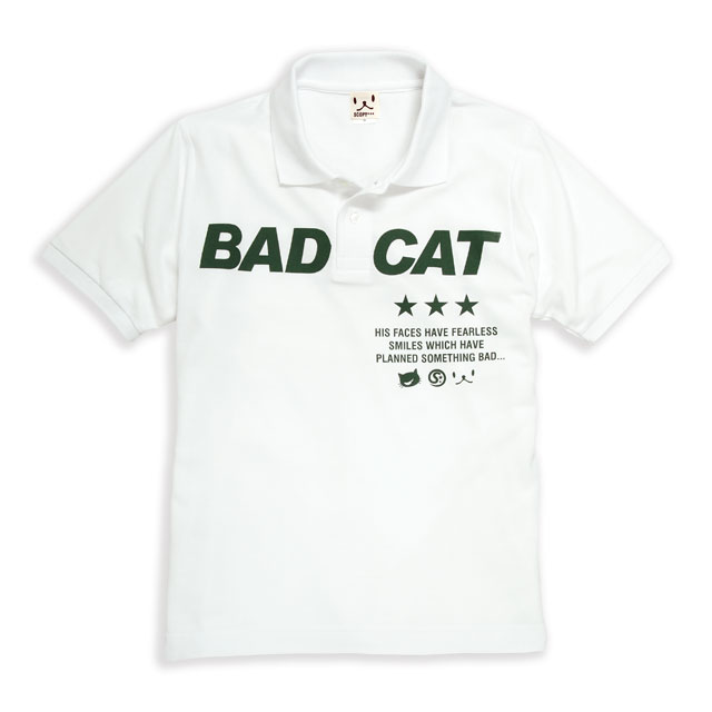 ポロシャツ メンズ レディース 半袖 猫 BAD CAT - ホワイト ネコ ねこ 猫柄 雑貨 - メール便 - SCOPY スコーピー