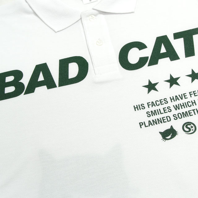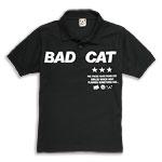 悪い猫をフィーチャーした「BAD CAT」のポロシャツバージョンです。背中には、BAD CATの全身が...。
