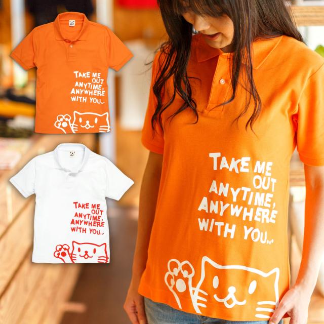 【商品カテゴリ】 猫 ねこ ポロシャツ オレンジ ネコ 猫柄 猫雑貨 メンズ レディース 半袖 トップス かわいい おしゃれ 大人 ペアルック お揃い プレゼント 大きいサイズ