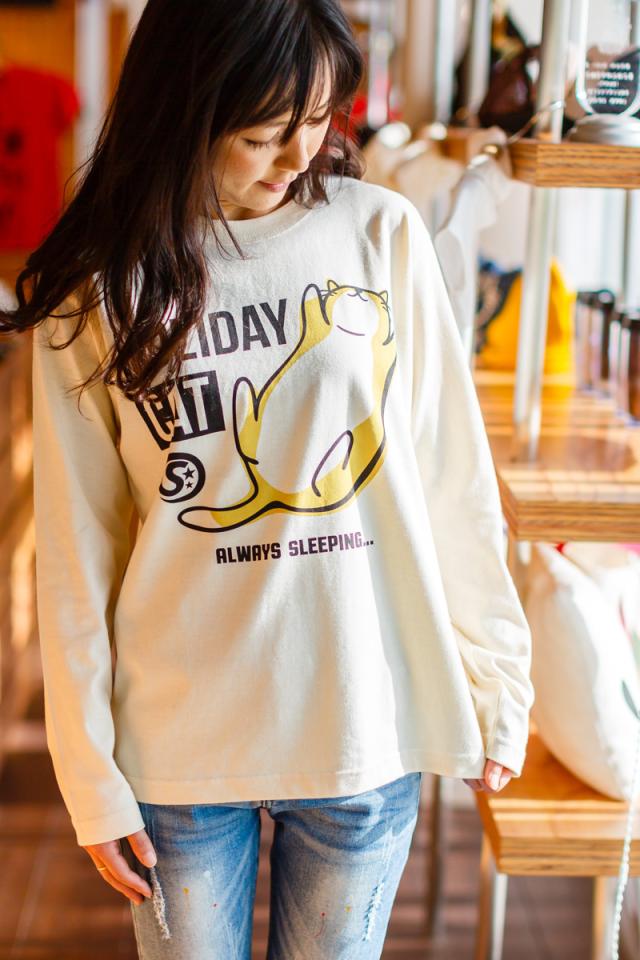 長袖 Tシャツ ロンT メンズ レディース 猫 HOLIDAY CAT - ナチュラル ネコ ねこ 猫柄 雑貨 - メール便 - SCOPY スコーピー