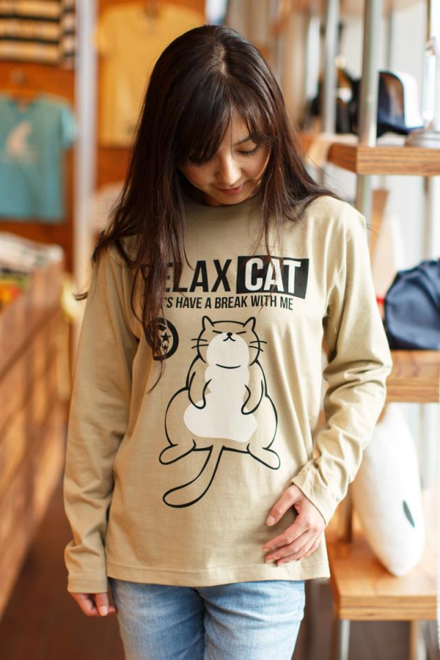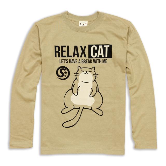 長袖 Tシャツ ロンT メンズ レディース 猫 RELAX CAT - サンドカーキ ネコ ねこ 猫柄 雑貨 - メール便 - SCOPY スコーピー