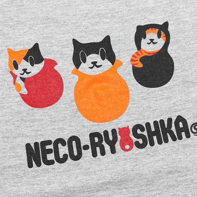 長袖 Tシャツ ロンT メンズ レディース 猫 NECO-RYOSHKA - グレー ネコ ねこ 猫柄 雑貨 - メール便 - SCOPY スコーピー