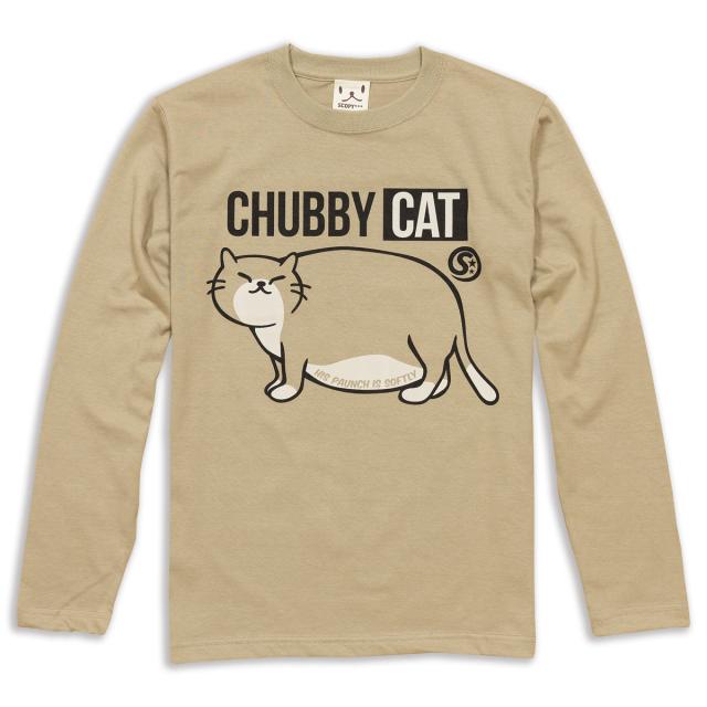 長袖 Tシャツ ロンT メンズ レディース 猫 CHUBBY CAT - サンドカーキ ネコ ねこ 猫柄 雑貨 - メール便 - SCOPY スコーピー