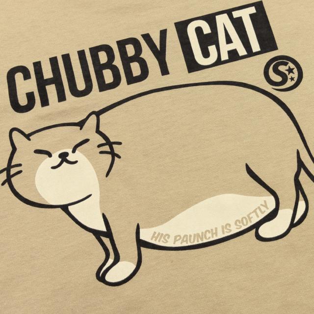 | ■ CHUBBY CAT (サンドカーキ) またまた太っちょ猫さんが...彼の太鼓腹はやわらかいよ〜って書いてあります。 太ってたってイイじゃないか、幸せだもの。笑顔満面、ハッピーな猫さん、見てるこっちもハッピーな気分になっちゃいますね! | |||