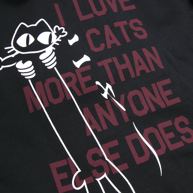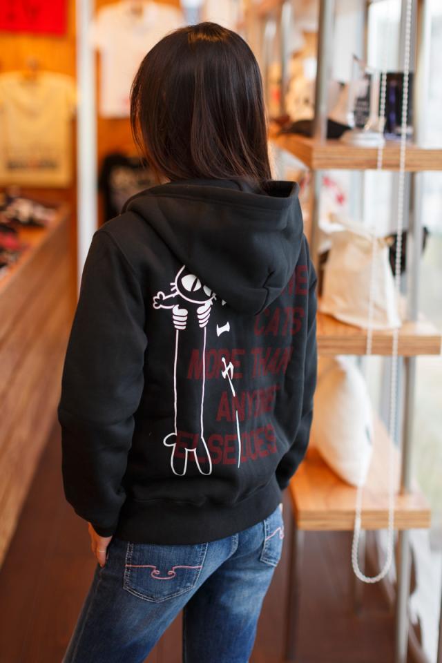 | ■ LOVE CAT あのノビネコでお馴染みの「LOVE CAT」パーカーバージョンです! バックにはノビネコと一緒に「私は誰よりもネコが好き」と英文であまり目立たない色だけど、でっかくプリントされています。 さりげなくネコ好きを主張したいあなたにオススメです! | |||