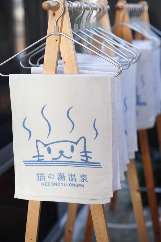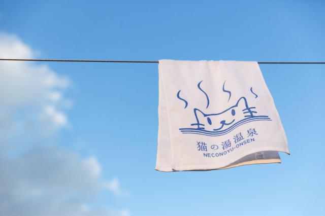大人気の猫の湯温泉のデザインをプリントしたフェイスタオルです。