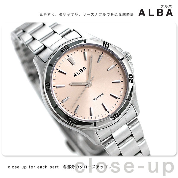 正規品 7年保証キャンペーン セイコー アルバ クオーツ レディース 腕時計 AQQK408 SEIKO ALBA アナログ ピンク ◆アルバは、スタンダードなデザインからスポーティなデザインまで、幅広い年齢層に向けたクオーツウォッチを展開。見やすさと使いやすさに加え、それぞれのシーンにあった飽きのこないデザインが魅力です。 視認性の良さと10気圧防水で実用性ばっちり。ルミブライト針付きで、暗闇でも時刻の確認が可能です。カジュアルスタイルにはもちろん、スーツやジャケットにもあわせていただけ、仕事での使用にもおすすめです。ペアウォッチとしても、プレゼントにもおすすめです。 発売日:2019年11月発売
