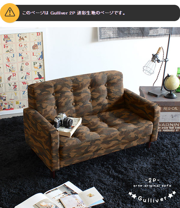 ソファ キッズソファ 迷彩 2人掛け 日本製 小さいソファ こども用 ミニソファ おしゃれ コンパクト Gulliver 2P 迷彩 □