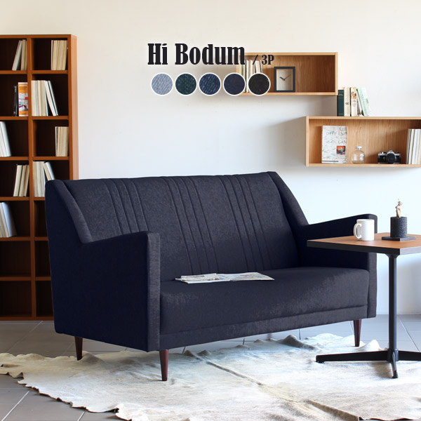 ソファ デニム 西海岸 3人掛け ハイバック コンパクト アーム付き カフェ ダイニングソファ 日本製 Hi Bodum 3P デニム □
