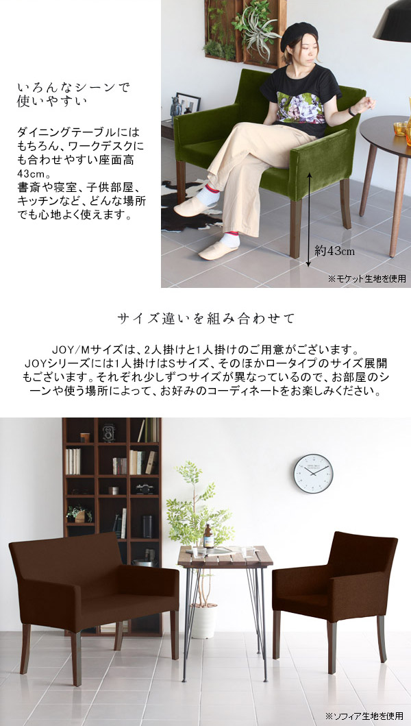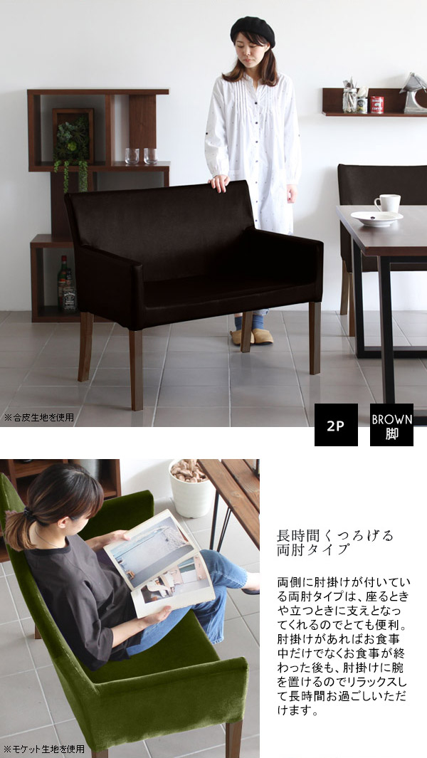 ダイニングチェア デニム カフェソファ 肘掛け付き 肘付き 2人掛け ダイニングチェアー アームチェア JOY 2P M両肘 脚BR デニム生地 □