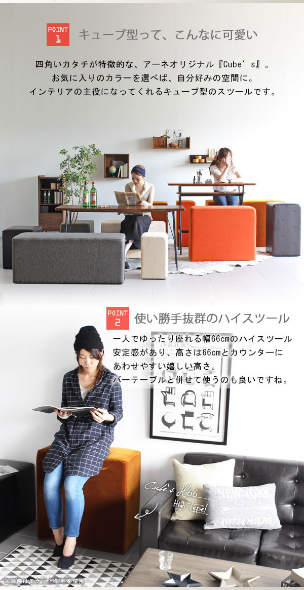 ハイスツール バースツール バーチェア シンプル カウンタースツール カウンターチェア スツール アンティーク ベロア Cube’s H66 □