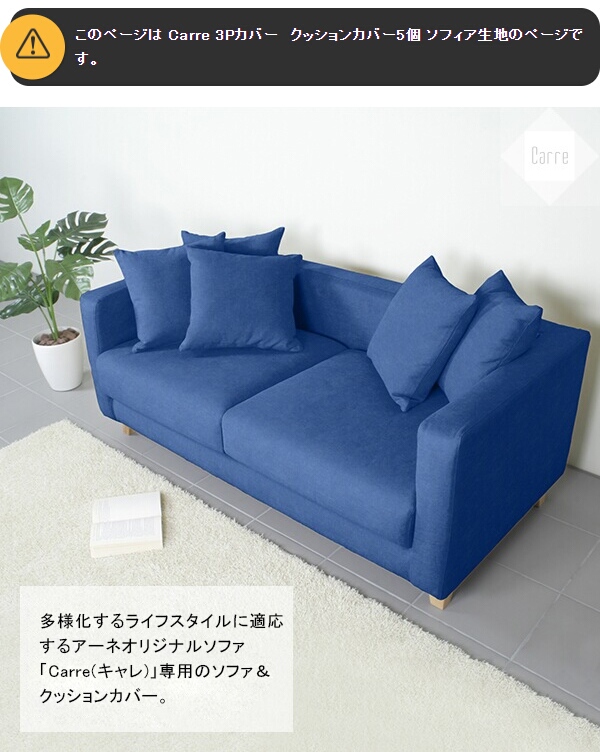 【Carre専用カバー】ソファカバー カバーリングソファ 3人掛け Carre 3P カバーのみ クッションカバー5個 ソフィア Carre 3Pカバー △
