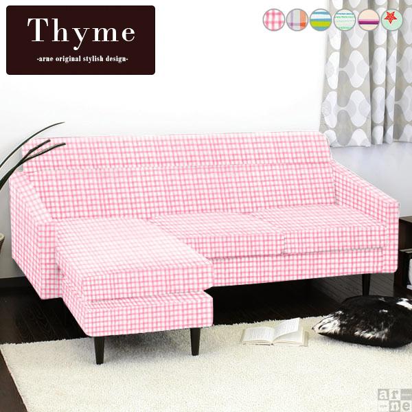 ソファ モダン グレー ブラウン おしゃれ 日本製 北欧 レトロ リビングソファ 三人掛け カウチソファ Thyme L字 パターン □
