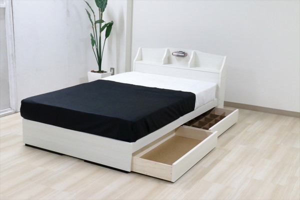 ベッド シングルサイズポケットコイルマットレス コンセント付き 引き出し付き 収納 K321 シングル(代引不可)【送料無料】
