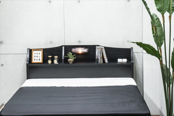 ヘッドキャビネットにライトとコンセントが付いて、更にフレームは安心の日本製!そんなベッドがこの価格で手に入ります。 緩やかなカーブを描いたデザインがお部屋を豪華に飾ります。