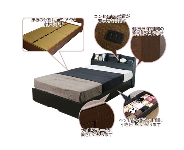 ベッド セミダブルサイズボンネルコイルマットレス コンセント付き 引き出し付き 収納 K321 セミダブル(代引不可)【送料無料】