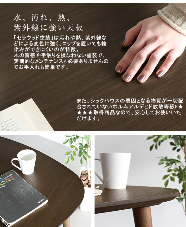 材質:[天板]MDF合板、天然木突板(セラウッド塗装)[脚]ラバーウッド(ウレタン塗装)