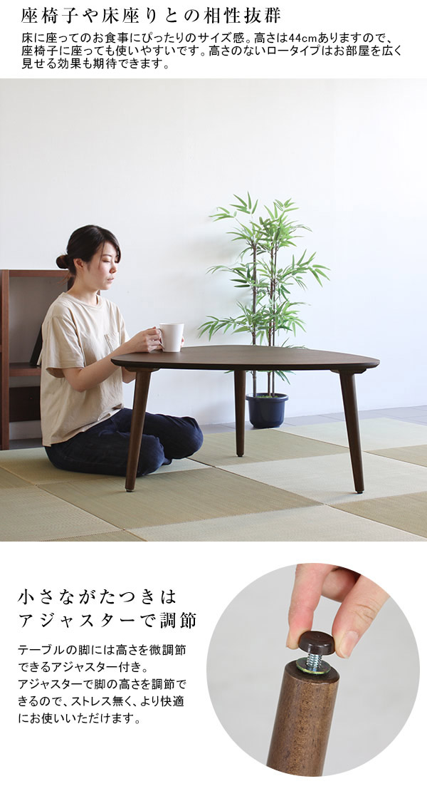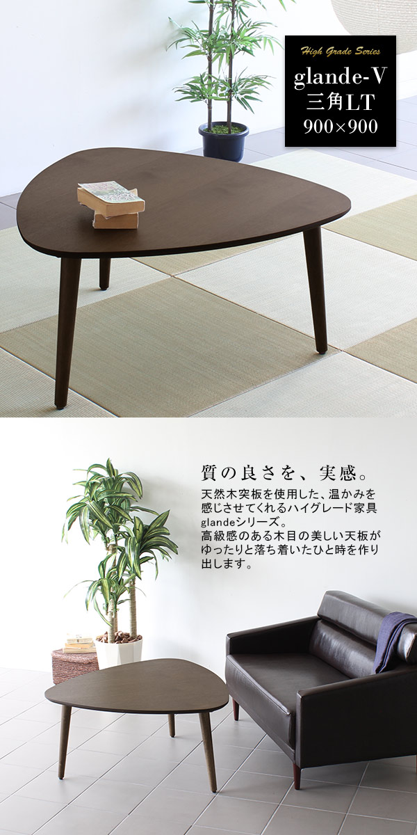 センターテーブル 無垢 三角 テーブル ローテーブル 木製 北欧 おしゃれ カフェ 座卓 和室 モダン glande-V 900×900 三角LT ◎