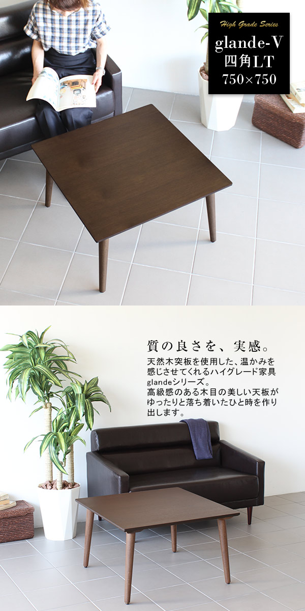センターテーブル ローテーブル 木製 北欧 おしゃれ リビング テーブル 正方形 モダン 座卓 無垢 glande-V 750×750 四角LT ◎