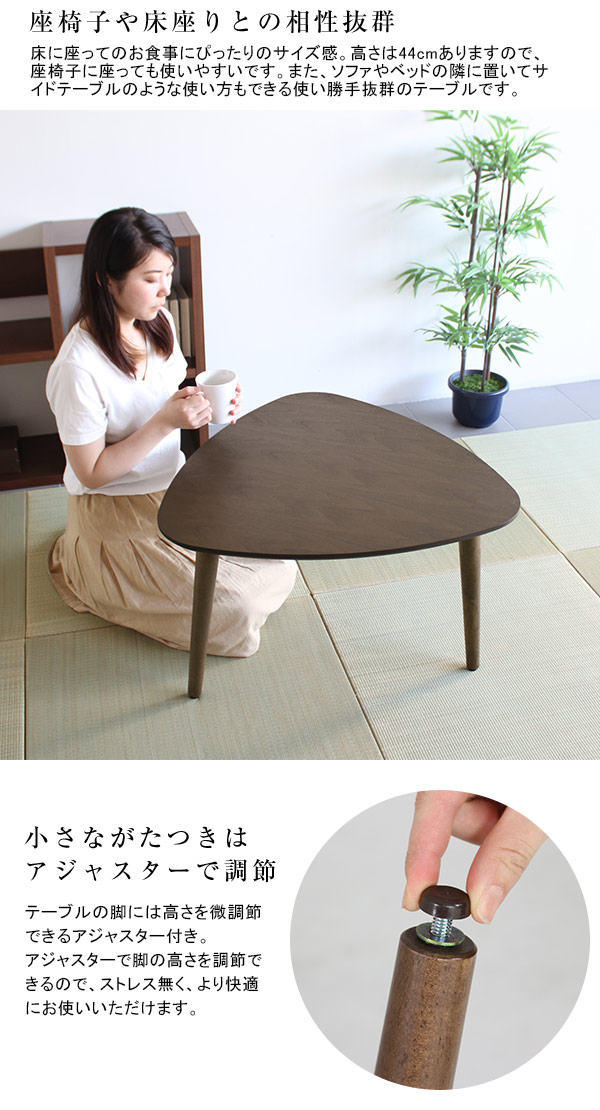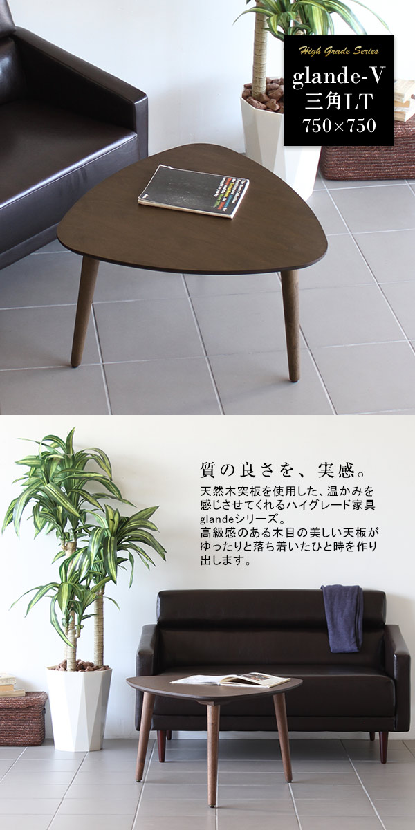 センターテーブル 無垢 三角 テーブル ローテーブル おしゃれ 木目 コーヒーテーブル 座卓 モダン glande-V 750×750 三角LT ◎