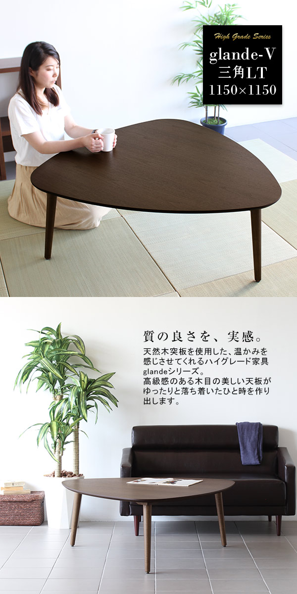 センターテーブル 三角テーブル ローテーブル 木製 無垢 北欧 テーブル おしゃれ モダン ちゃぶ台 座卓 glande-V 1150×1150 三角LT ◎