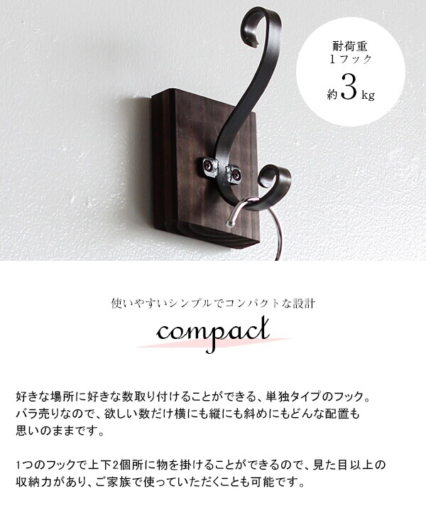 耐荷重:1フックにつき約3kgまで