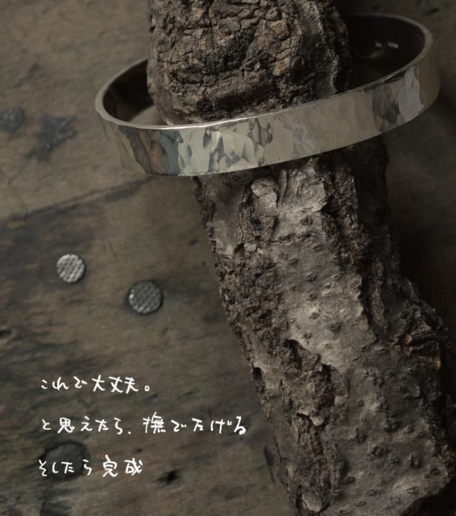 ツチめのバングル 太 メンズ レディース ハンドメイド オーダー シルバー 槌目 シンプル 上品 おしゃれ 腕輪 Silver 950 ごつめ ゴツめ マモる 手作り 手づくり tkb004