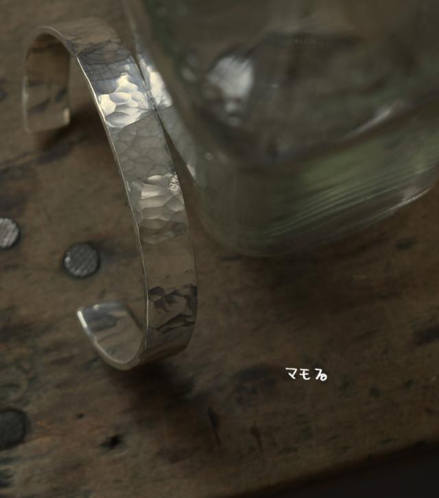 ツチめのバングル(太) メンズ レディース ハンドメイド オーダー シルバー 槌目 シンプル 上品 おしゃれ 腕輪 Silver 950 ごつめ ゴツめ マモる 手作り 手づくり(tkb004)