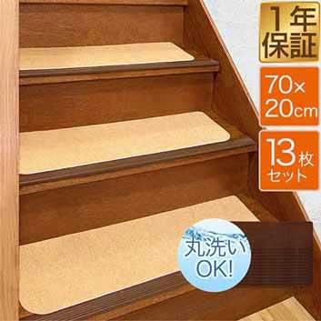 滑り止め マット 階段マット すべり止め付階段マット 70x20cm 13枚入り ベージュ ブラウン 階段 転倒防止 ペット ケガ防止に 室内用 吸着 洗える ウォッシャブル 階段用 滑り止め すべり止め シート 送料無料