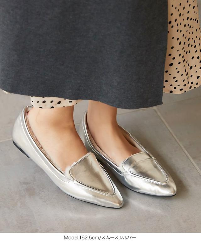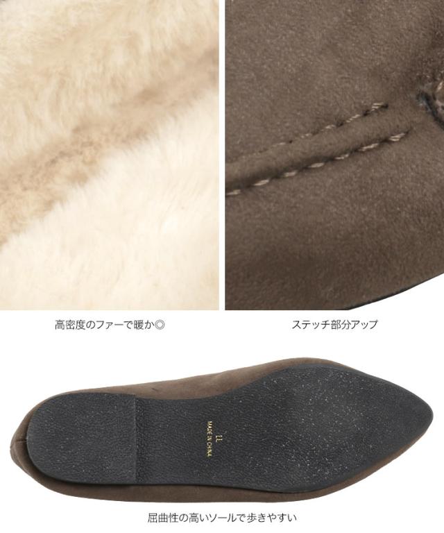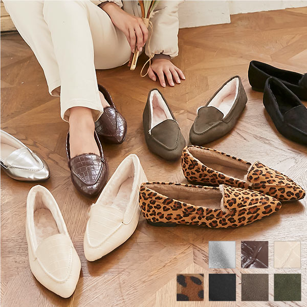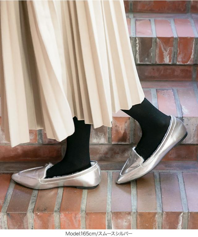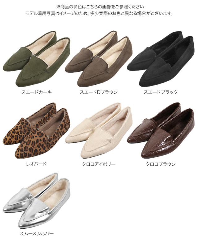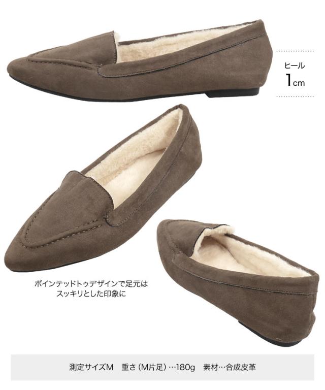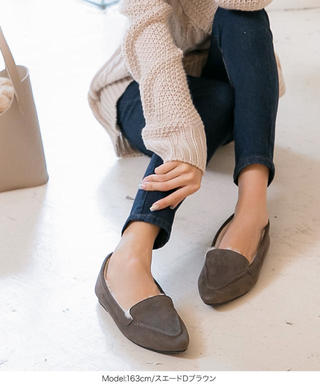 春新作 ポインテッドトゥファーローファ I1962 入荷済 2023 レディース 体型カバー シューズ ムートン 黒 防寒 靴 大人 カジュアル