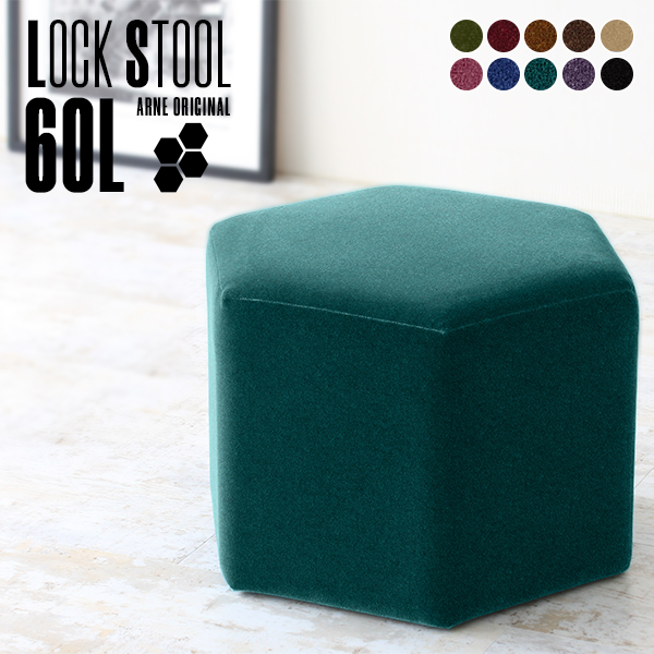 ロースツール 座面高 40cm ロー スツール オットマン 幅60 ロースツール 低め 60cm 高さ40cm 六角形 玄関 おしゃれ 待合 北欧 低い Lock stool 60L モケット □