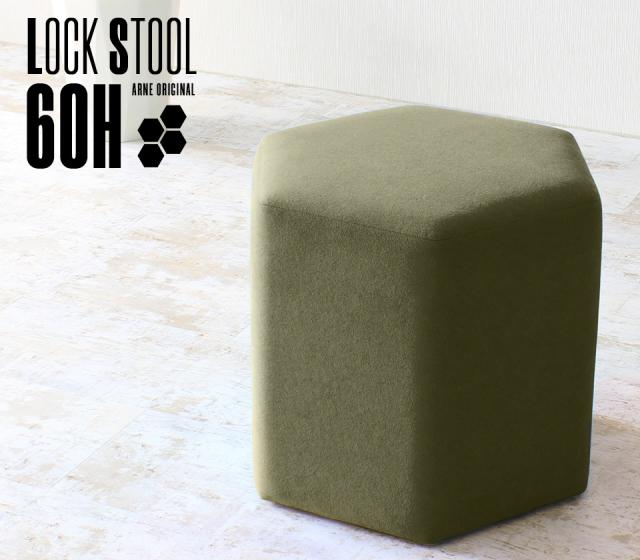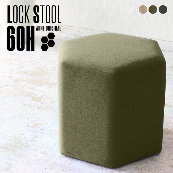 スツール 高さ52cm 60 待合 チェア 60cm ソファ グレー ハイスツール 幅60 玄関 六角形 サイドテーブル おしゃれ 腰掛け Lock stool 60H モダン □