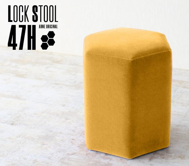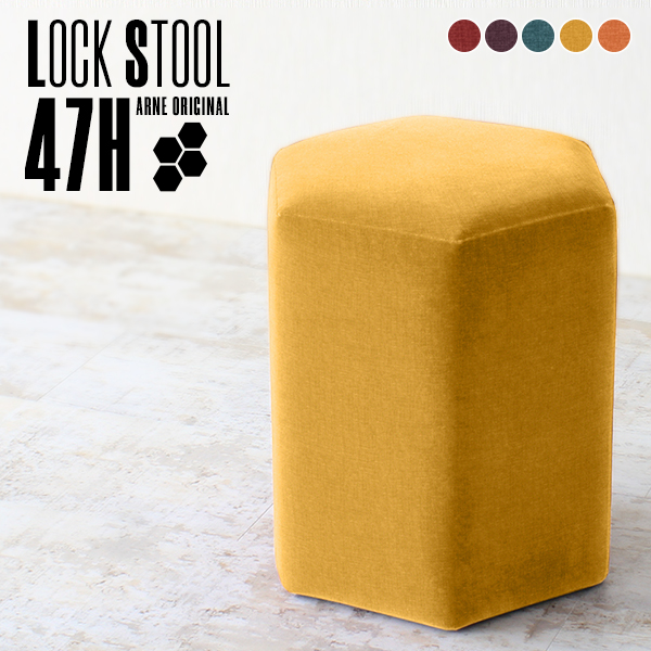 スツール 背もたれなし ハイスツール オフィス ソファ 完成品 高さ52cm 日本製 1人掛け 六角形 玄関 おしゃれ 40 病院 待合 北欧 Lock stool 47H リゾート □
