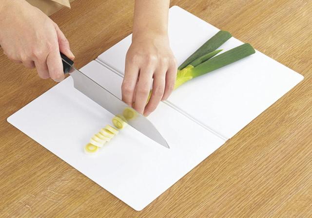 まな板を折りたたむことで食材をこぼさずお鍋へ投入できます。