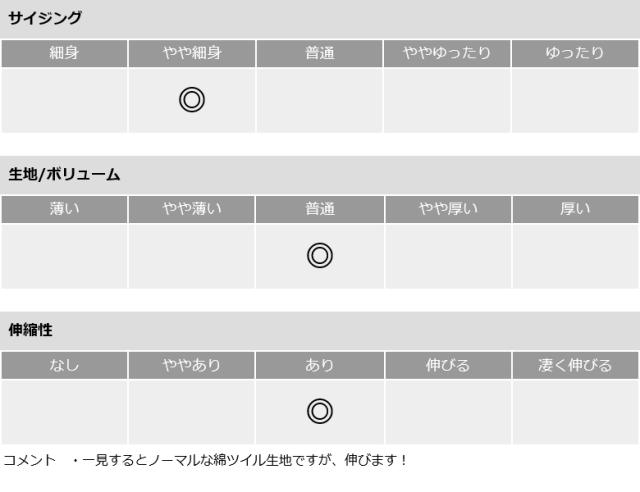 綿98% ポリウレタン2%混紡の、ストレッチコットン素材を使用。