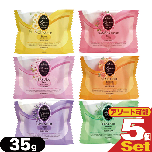 【ホテルアメニティ】【業務用】【化粧石けん・固形石鹸】アロマデュウ(Aroma Dew) ゲストソープ 35g ×5個セット(6種の香りから選択) - 植物性原料を使用したナチュラルなソープ。