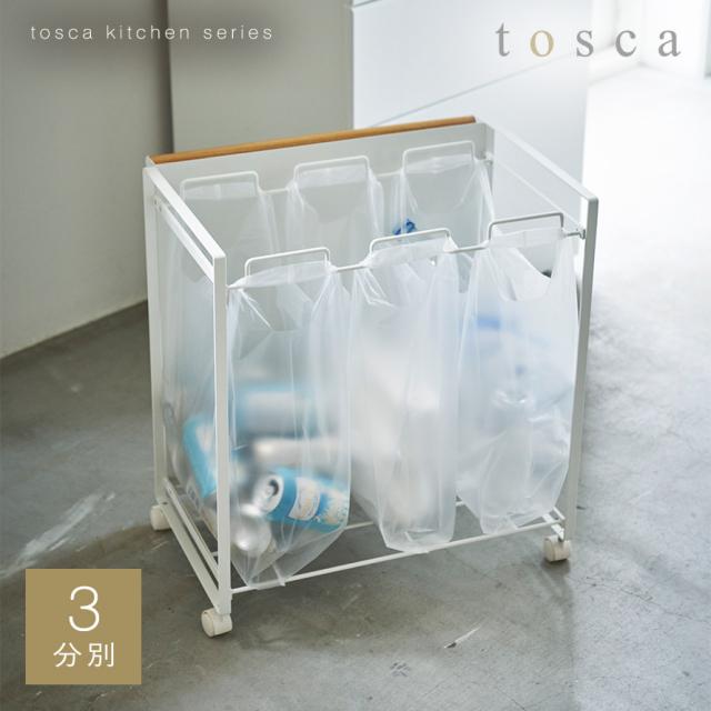 ゴミ箱 分別 キャスター付き おしゃれ ごみ箱 北欧 ワゴン 目隠し分別ダストワゴン トスカ tosca 山崎実業 3分別 ホワイト白 シンク下 レジ袋 メーカー直送
